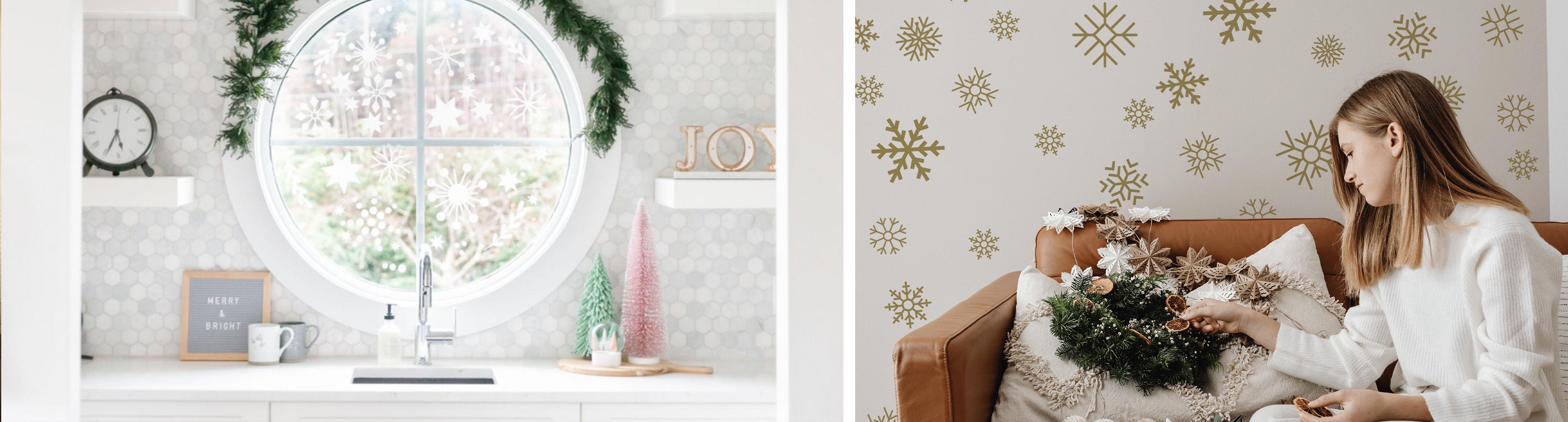 Each decal is freestanding, so you can place and space them however you like. This season’s favorite trend? Arranging your holly decals into a wreath! It’s quicker, cleaner, and far more fun than crafting a real one.