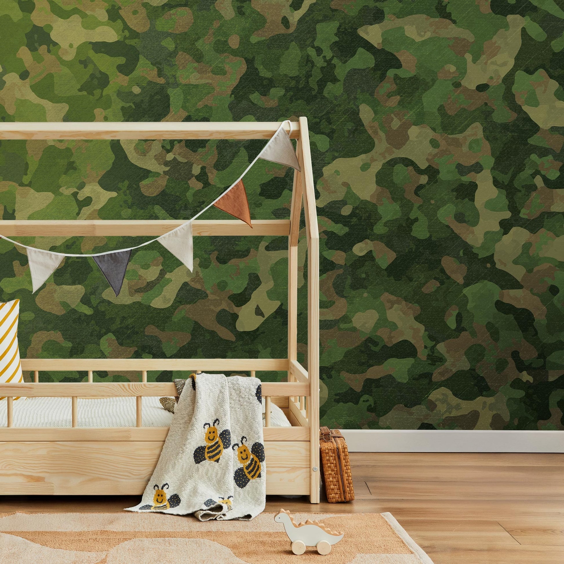 Bring the outdoors in with our Camouflage Wall Mural! Featuring a fresh take on green camo, this design adds rugged style and playful energy to bedrooms, playrooms, or any space that needs a bold touch.