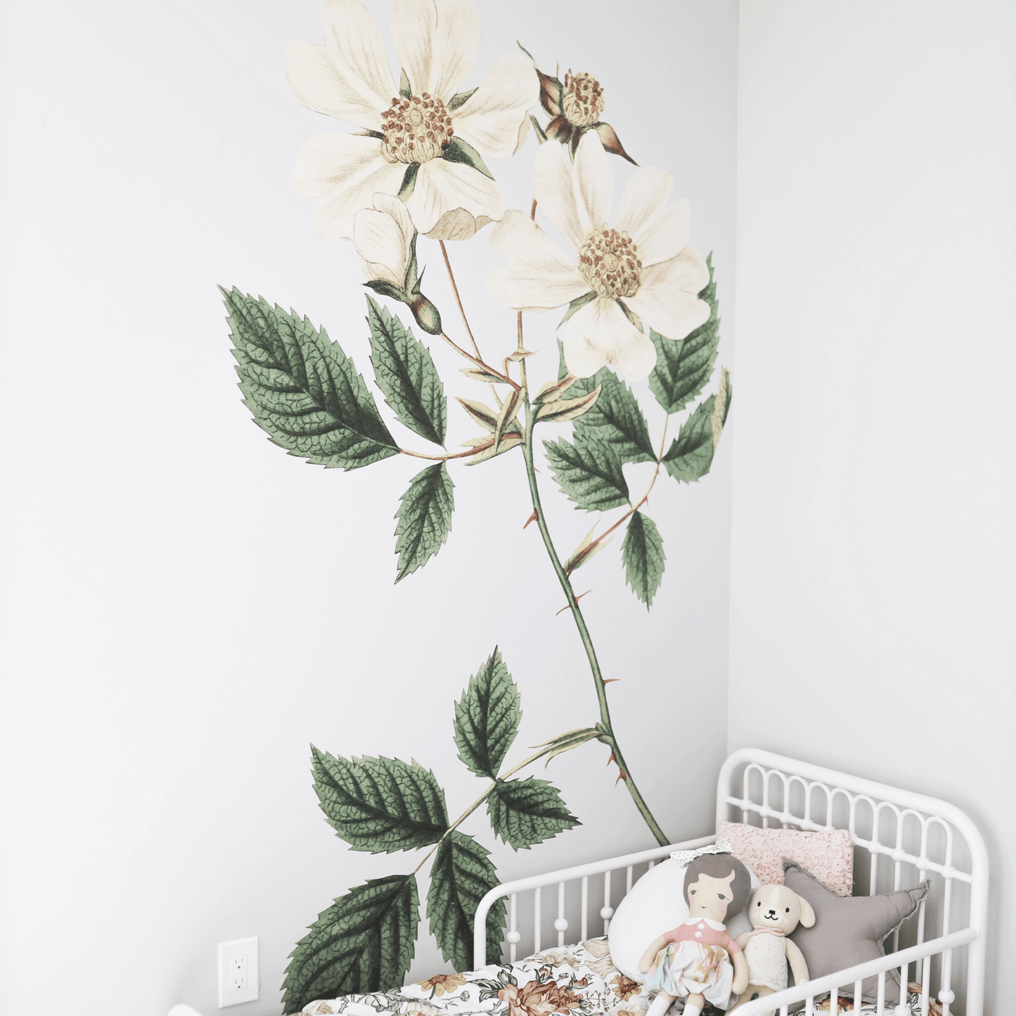 Bring nature indoors with our wildflower wall decal, featuring large white and green blooms that add fresh, garden-inspired charm to any nursery or room. Easy to apply and fully removable, it's the perfect renter-friendly wall art for transforming your space with soft floral elegance.
