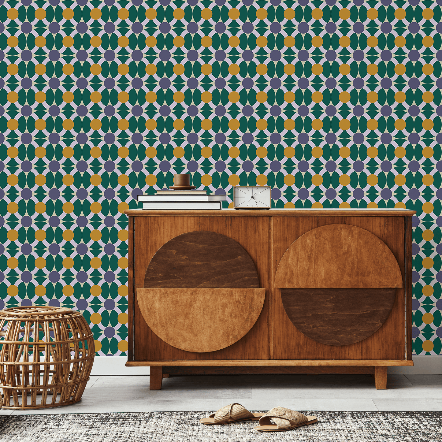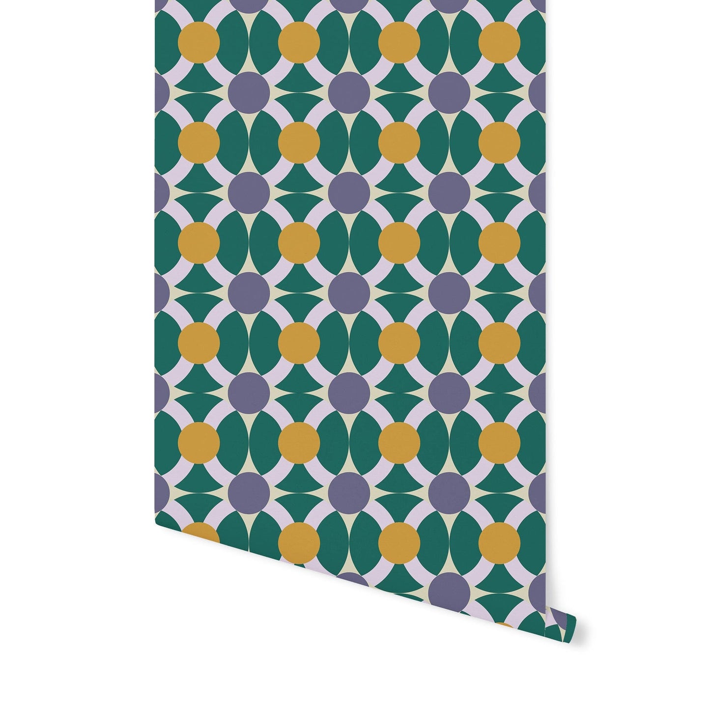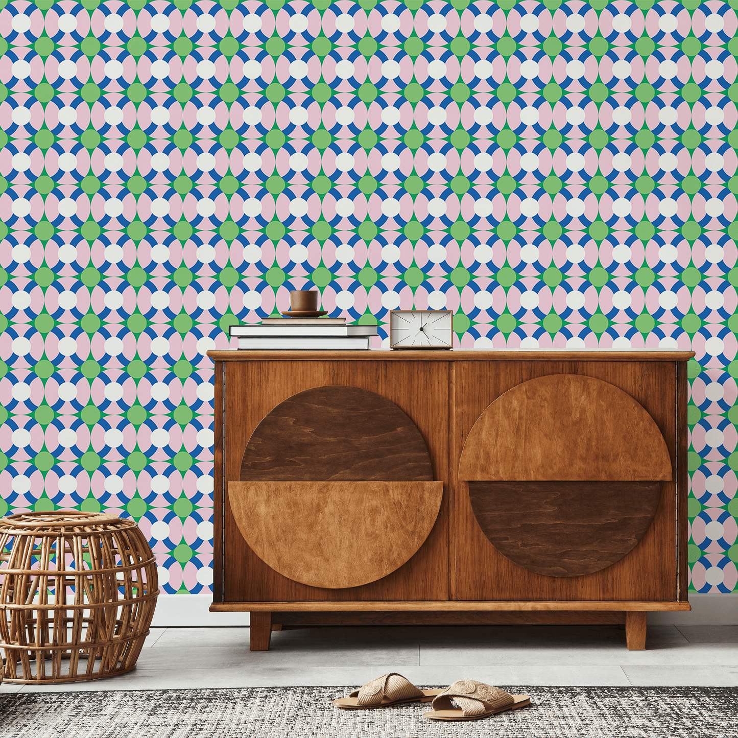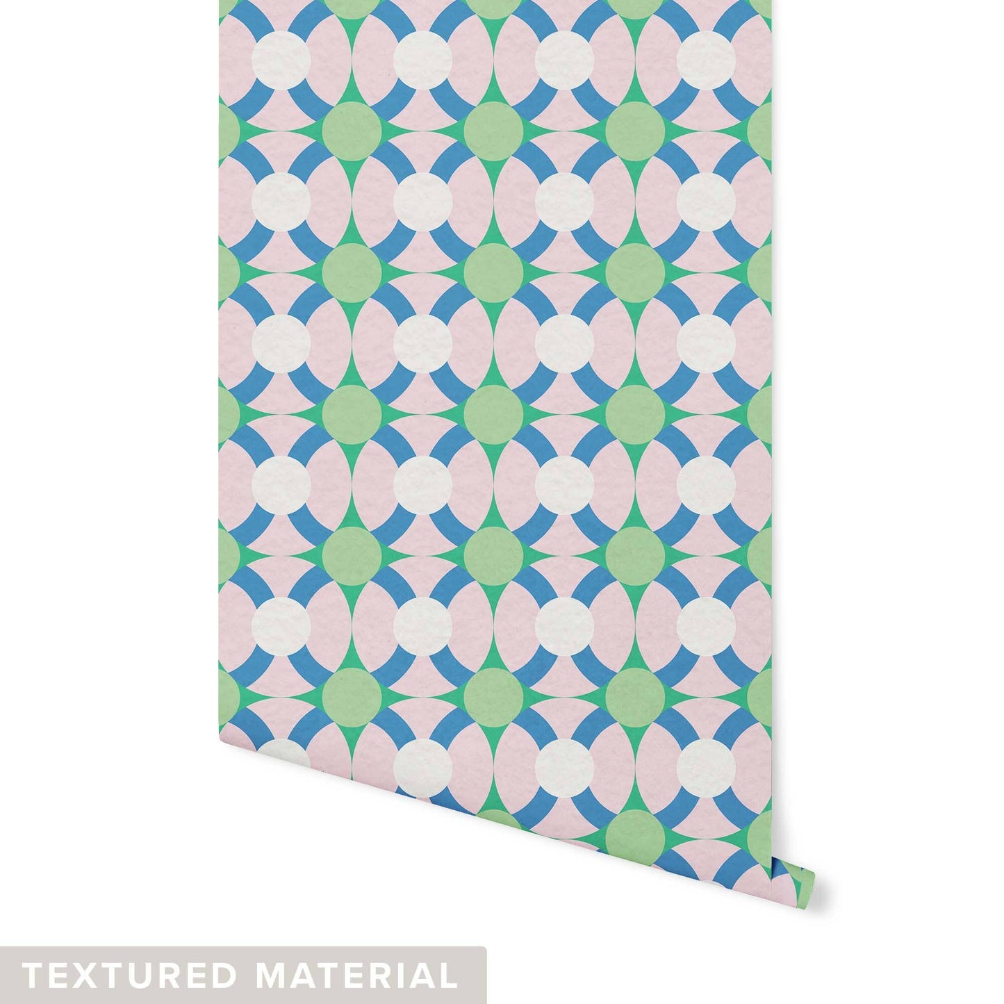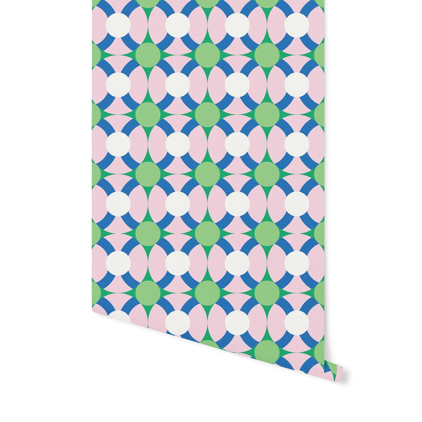Show off your personality with the Urbanwalls x Sunny Circle Discography Wallpaper. With colorful circular patterns in vibrant pinks, greens, and blues, this bold peel and stick wallpaper adds a fresh and artistic twist to any room. Perfect for creating a standout feature wall with ease.