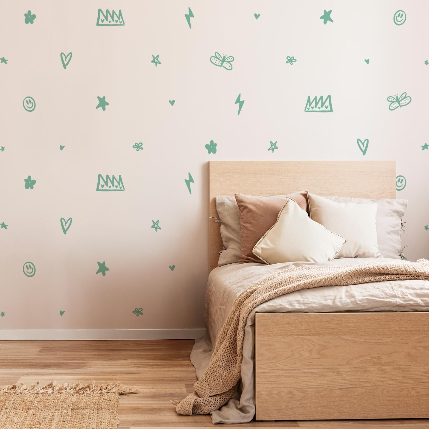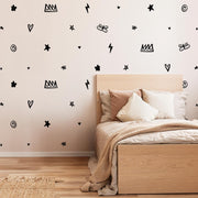 Add bold, playful style with Wild Bloom Wall Decals. Hand-drawn florals, stars, and hearts in black and white create an artistic, high-contrast look—no mess, just peel and stick.